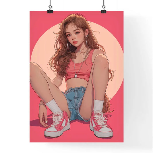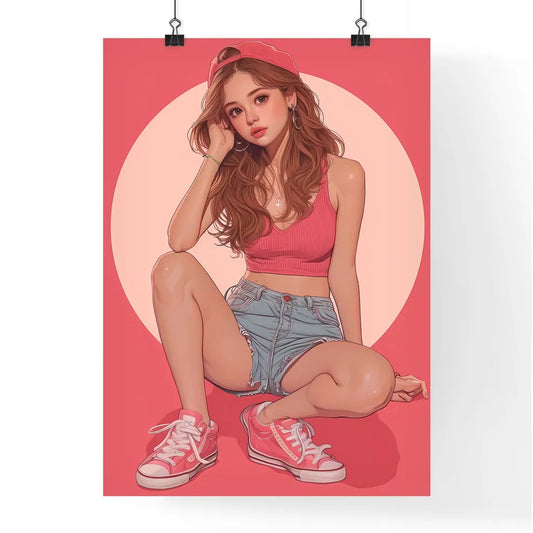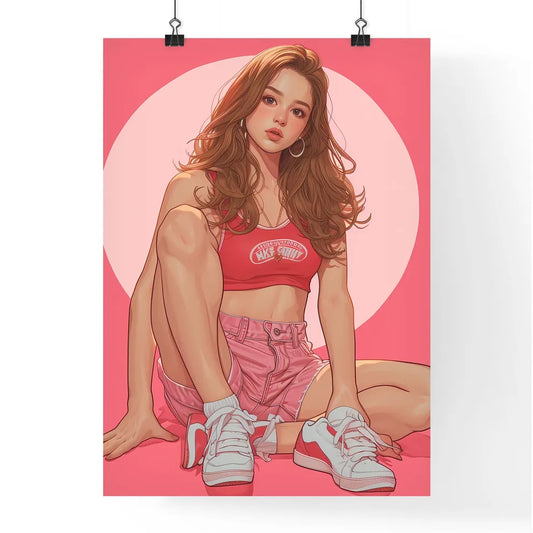 Pin-up girl,Asia, full body, visible toned legs - Art print of a woman's body in shorts