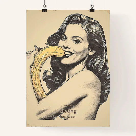 banana, dieting, retro woman, A Poster of a woman holding a banana