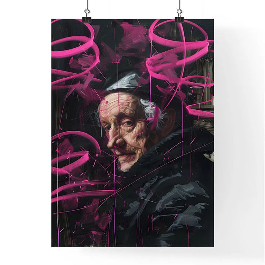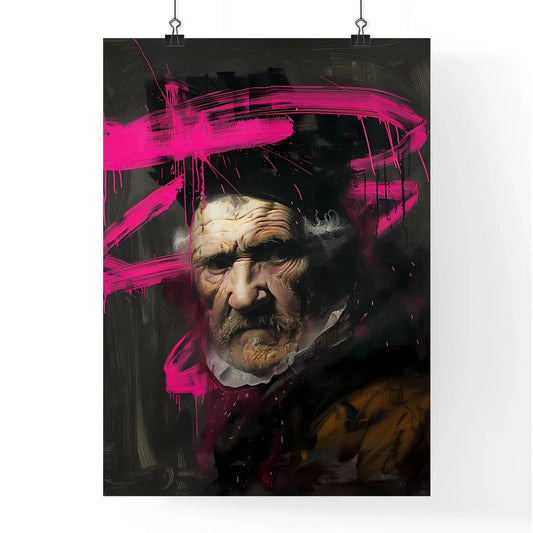 Baroque Portrait Graffiti Hybrid Painting, Dark Academia Aesthetic, Visible Paintbrush, Beard, Pink Head Paint