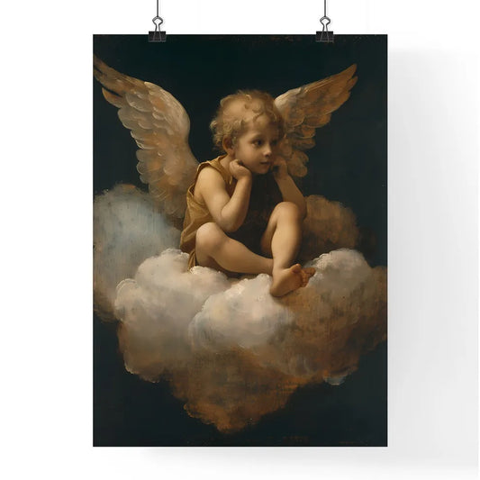 Baroque Cherubim Cloud Painting: Child Sitting on Cloud, Art, Canvas, Oil, Vibrant, Artistic