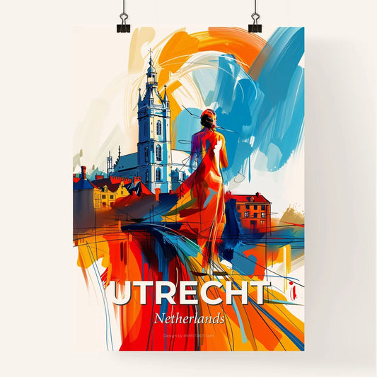 Vibrant Utrecht, Netherlands - A Painting Of A Woman Walking On A Bridge