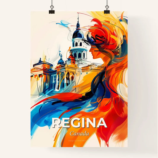 Vibrant Regina, Canada - A Painting Of A Woman With A Building In The Background