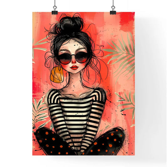 Vibrant Quirky Painting: Trendy Art Featuring Woman in Sunglasses and Striped Shirt