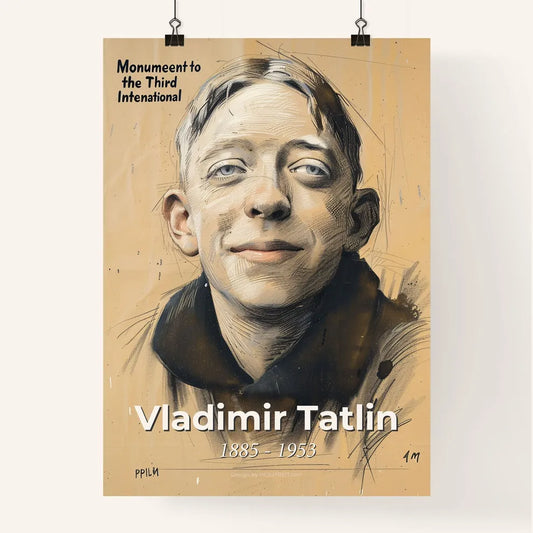 Vibrant Tribute to Vladimir Tatlin: Dynamic Constructivism Portrait on Beige - Artful Gift for Home Decor Lovers
