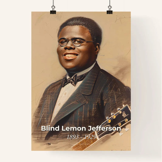 Captivating Portrait of Blind Lemon Jefferson: Iconic 1920s Blues Legend – Contemporary Art on Beige with Elegance & Soul