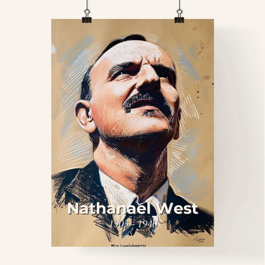 Captivating Nathanael West Portrait: A Contemporary Art Print in Chic Beige, Perfect for Home Decor & Unique Gift Ideas.