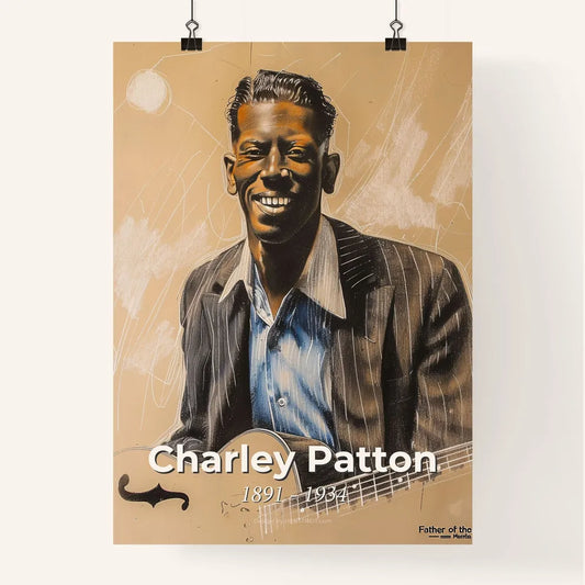 Charley Patton: Delta Blues Legend – Contemporary Art Print on Beige with Dynamic Lines, Perfect for Gift or Home Decor