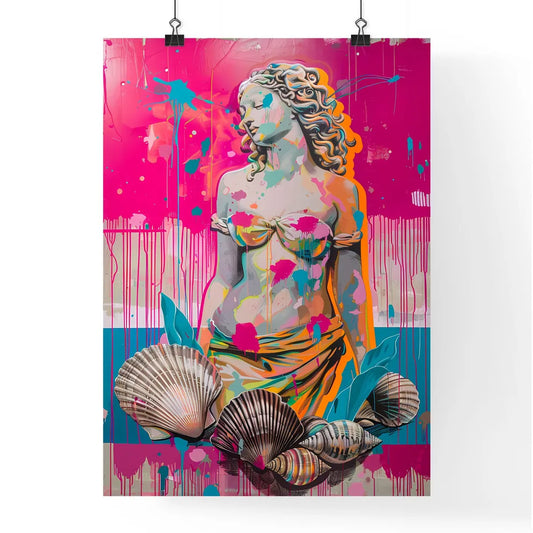 Colorful Renaissance Painting of Venus Emerging from the Sea with Drippy Paint and Neon Accents