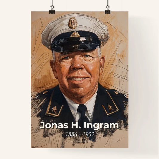 Dynamic Portrait of Admiral Jonas H. Ingram: A Contemporary Tribute in Subtle Hues - Perfect for Home Decor & Gifting