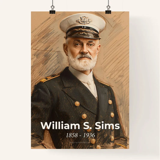 Dynamic Portrait of Admiral William S. Sims: A Modern Tribute to Navy Leadership, Captured in Contemporary Art on Beige Canvas