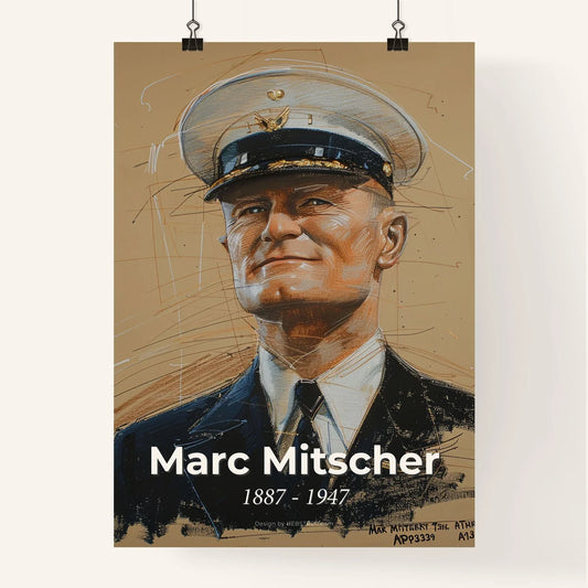 Dynamic Portrait of Admiral Marc Mitscher: A Unique Contemporary Artwork on Beige, Perfect for Home Decor & Gifting