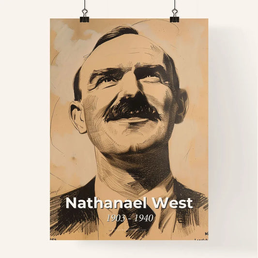 Dynamic Portrait of Nathanael West: A Sensual Satirical Artist's Tribute on Bright Beige - Perfect for Home Décor
