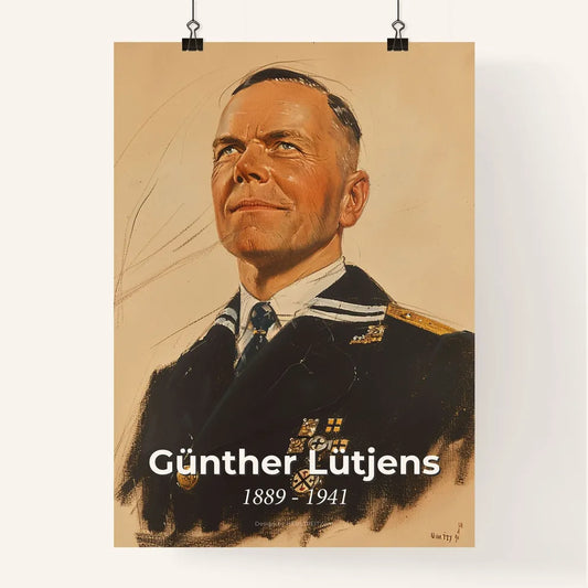 Elegant Portrait of Admiral Günther Lütjens: Rare Contemporary Art Print on Beige - Perfect Gift or Home Decor Accent