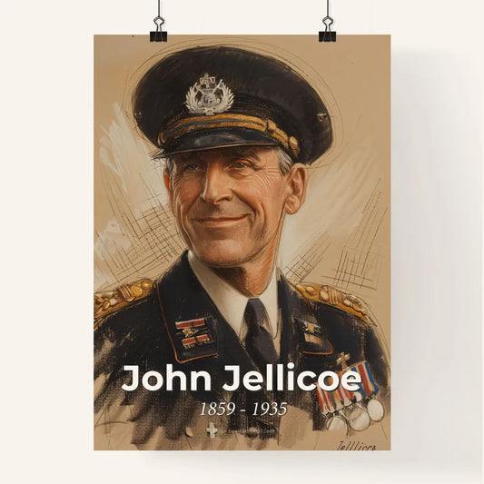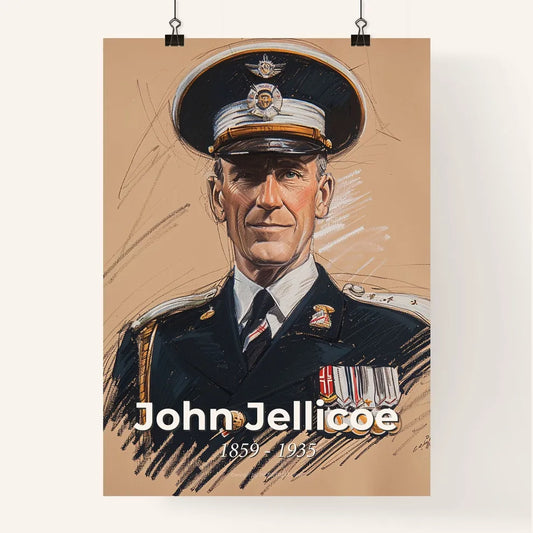 Elegant Portrait of Admiral John Jellicoe: Dynamic Contemporary Art on Beige, Perfect for Home Décor & Unique Gift Idea