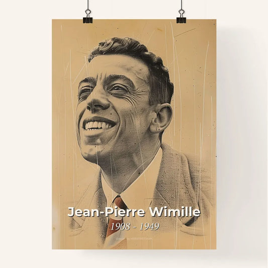 Elegant Portrait of Jean-Pierre Wimille: Celebrating a Pre-War Racing Legend—Artfully Rendered on Beige with Dynamic Hatching