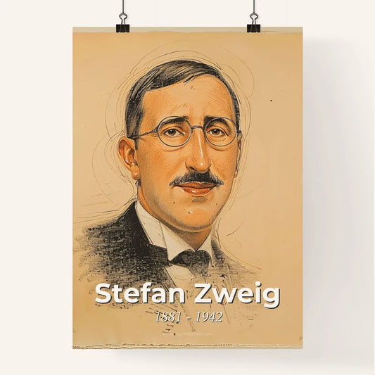 Elegant Portrait of Stefan Zweig: Contemporary Art Print on Beige, Dynamic Hatching & Unique Perspective - Perfect for Home Decor
