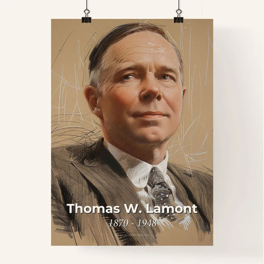 Elegant Portrait of Thomas W. Lamont: A Masterful Blend of Contemporary Art on Beige Paper - Perfect for Gifting or Home Décor!