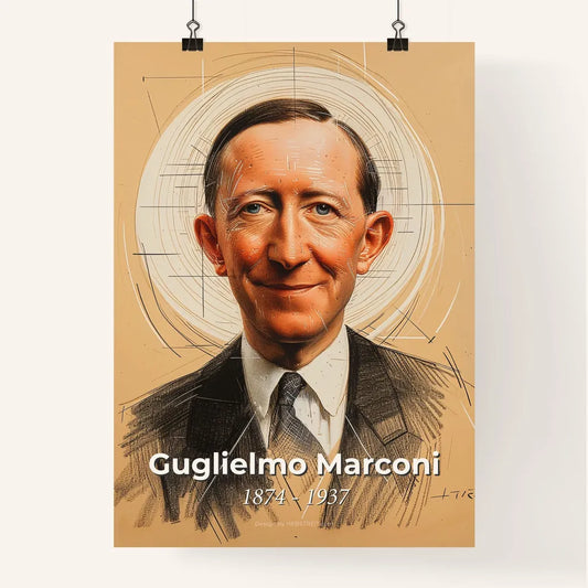 Elegant Tribute to Guglielmo Marconi: Captivating Contemporary Portrait on Beige, Perfect for Home Decor & Unique Gifts