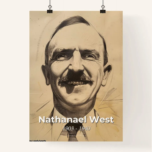 Elegant Satire: Nathanael West Portrait - Contemporary Art Print on Beige, Dynamic Lines & Subtle Hues, Perfect for Home Decor