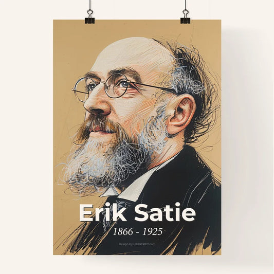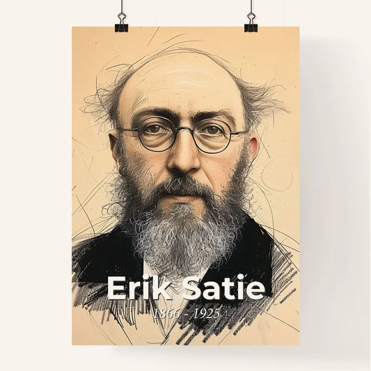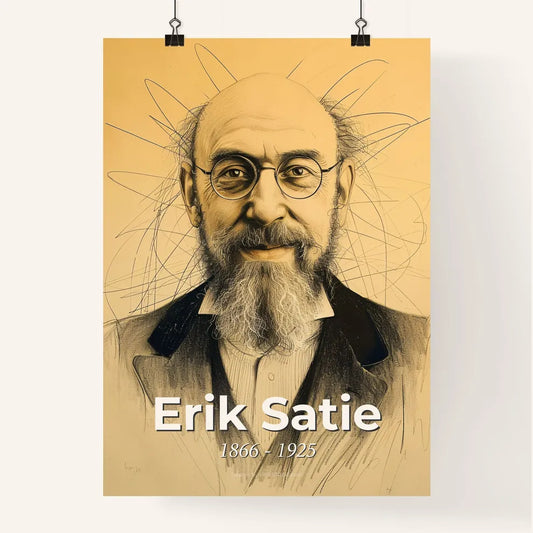 Erik Satie: A Minimalist Muse - Contemporary Portrait Print on Beige, Dynamic Lines & Hatching for Unique Home Decor, Gift-Ready!
