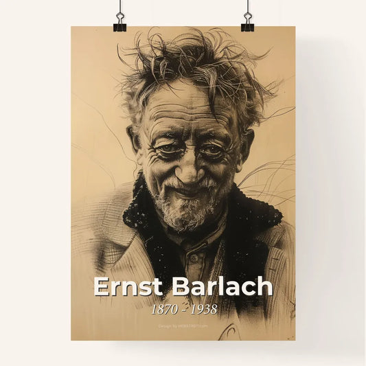 Ernst Barlach-Inspired Expressionist Portrait: Captivating Lines & Sensual Gestures on Elegant Beige - Perfect for Home Décor!
