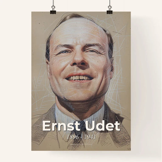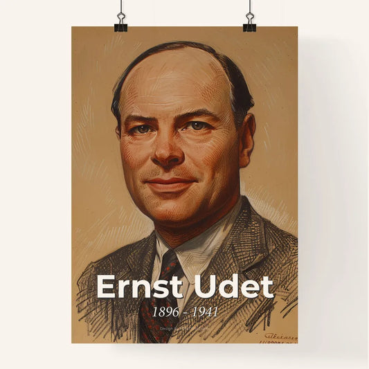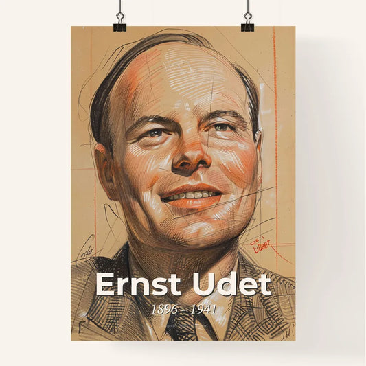 Ernst Udet: Captivating Portrait of the WWI Ace - A Striking Contemporary Artwork on Beige, Perfect for Home Decor or Unique Gifts