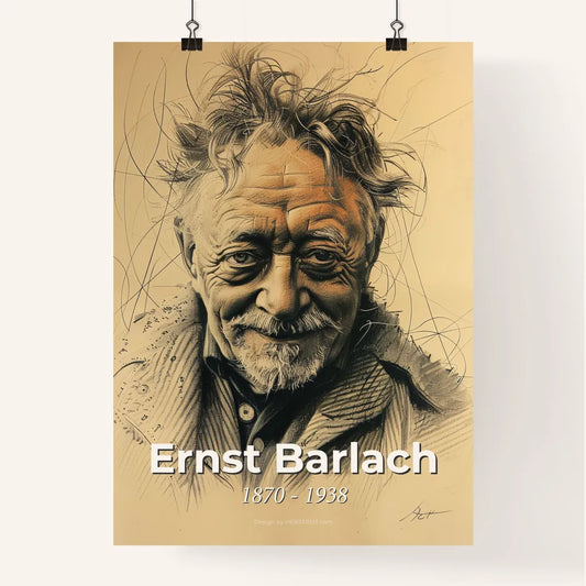 Ernst Barlach-Inspired Expressionist Portrait: Elegant Gestures & Dynamic Lines on Bright Beige - Perfect for Home Decor Gifts!