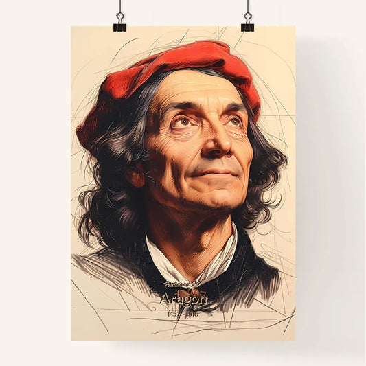 Ferdinand II, Aragon, 1452 - 1516, A Poster of a man with long hair wearing a red hat