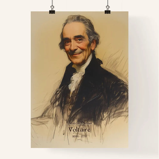 François-Marie Arouet, Voltaire, 1694 - 1778, A Poster of a man in a black coat