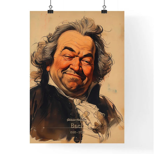 Johann Sebastian, Bach, 1685 - 1750, A Poster of a man with long hair wearing a black jacket