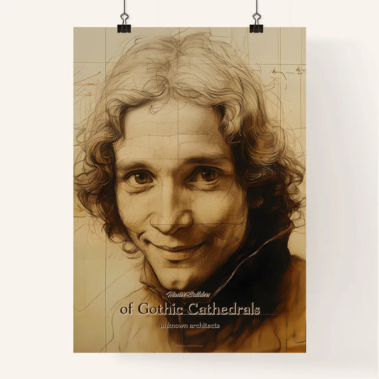 Master Builders, of Gothic Cathedrals, unknown architects, A Poster of a drawing of a man smiling