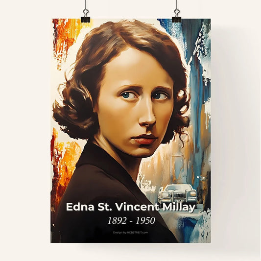 Portrait of Edna St. Vincent Millay, 1892 - 1950. Impressionistic painting of a woman with short brown hair.