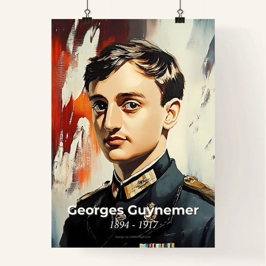 Portrait of Georges Guynemer, 1894 - 1917. Impressionistic painting of a man in a military uniform.