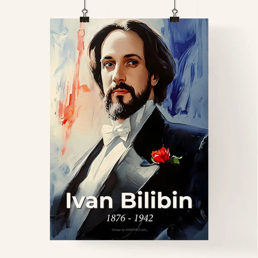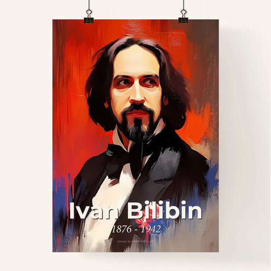 Portrait of Ivan Bilibin, 1876 - 1942. Impressionistic painting of a man in a tuxedo.