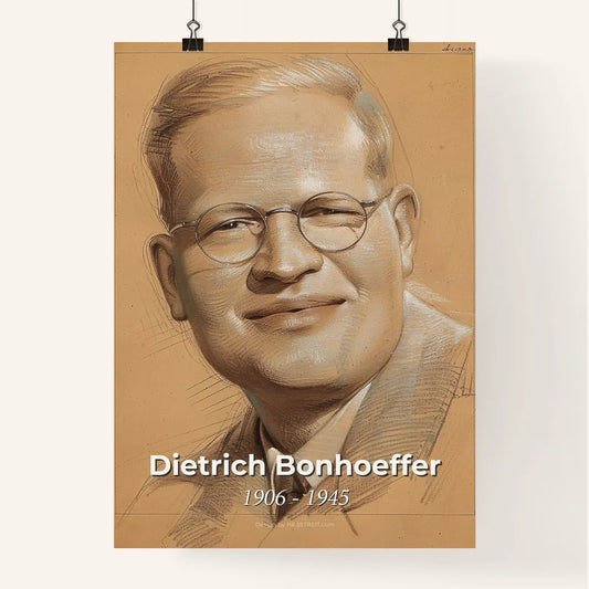 Radiant Tribute to Dietrich Bonhoeffer: Contemporary Art Portrait Celebrating a Martyr's Spirit on Elegant Beige Background