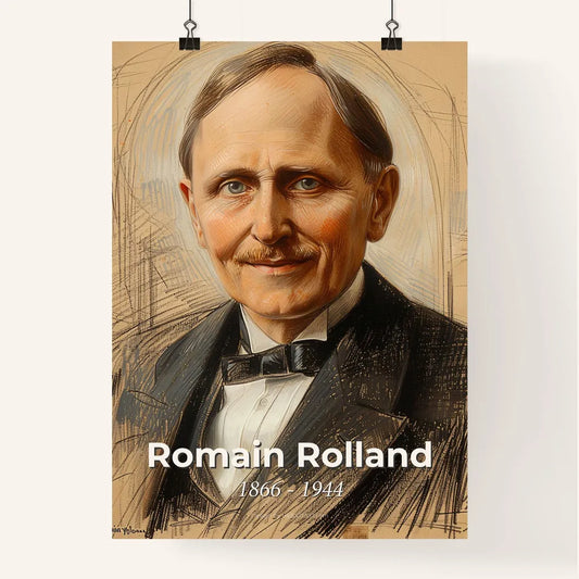 Romain Rolland: Elegant Portrait of the Nobel Laureate – Contemporary Art Print on Beige, Perfect for Home Decor & Gifting