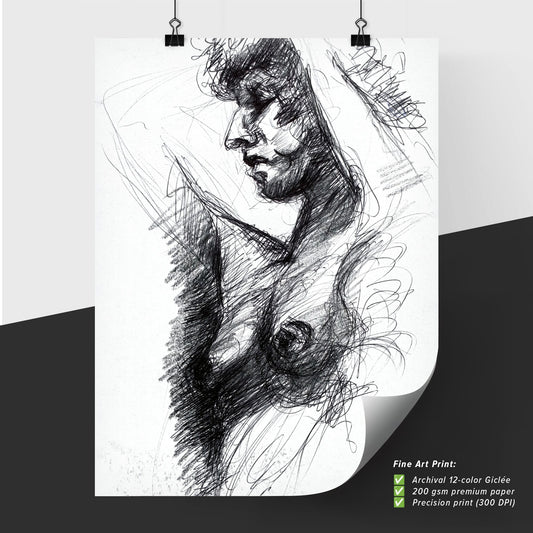 Sergey Yesenin: Passionate Poet of Love & Tragedy - Contemporary Art Print with Dynamic Lines & Sensual Hatching | Unique Home Decor