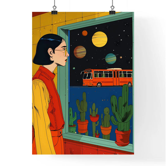 Sci-fi Alien Bus Station Artwork Waiting Cosmic Stars Woman Window