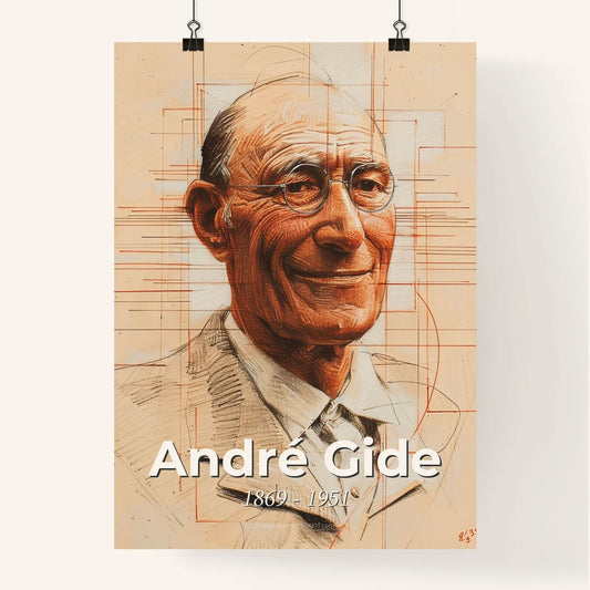 Stunning André Gide Portrait: Contemporary Art Print – Colorful Lines & Hatching on Beige, Perfect for Home Décor & Unique Gifts