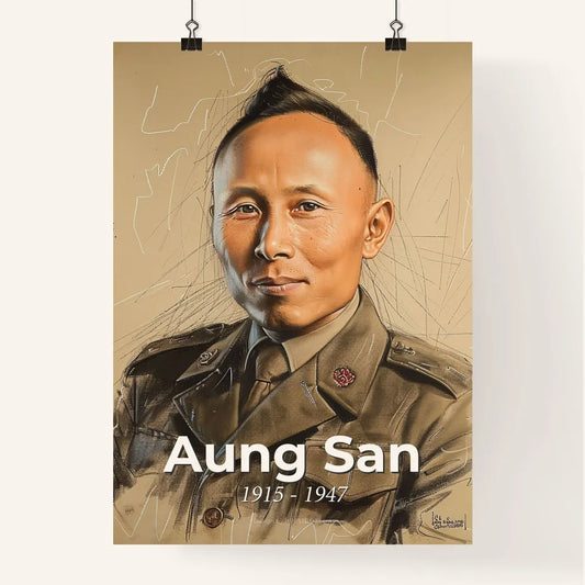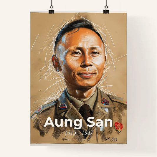 Timeless Aung San Portrait: Celebrating the Father of Modern Myanmar - Dynamic Contemporary Art Print for Home Decor