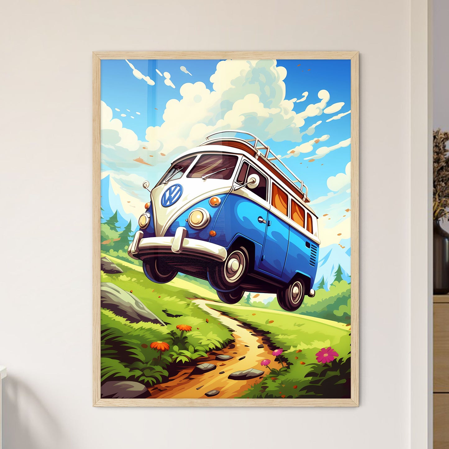 Cartoon van print, Travel gift, Road art decor, Colorful painting, Hand-painted graphic, Acrylic poster, Interior design, Home decor, Flying van artwork, Van road trip, Cartoon art gift, Graphic acrylic print, Colorful van decoration, adventure, backgrounds, blue, bus, car, cartoon, cloud, computer graphic, day, design, driving, flat, forest, fun, grass, green color, illustration, image, journey, land, land vehicle, landscape, meadow, mini van, mode of transport, mountain, nature, non-urban scene, old-fashioned, outdoors, riding, road trip, rural scene, season, sky, speed, summer, sun, traffic, transportation, travel, tree, truck, vacations, vector, wheel Cartoon van print, Travel gift, Road art decor, Colorful painting, Hand-painted graphic, Acrylic poster, Interior design, Home decor, Flying van artwork, Van road trip, Cartoon art gift, Graphic acrylic print, Colorful van decoration