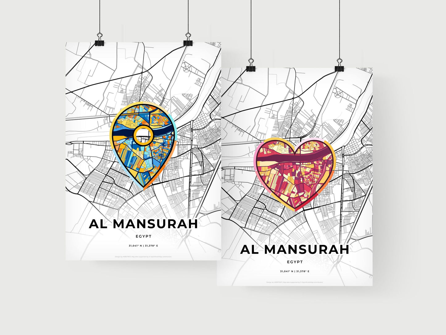 Al Mansurah Egypt, minimal art map with a colorful icon
