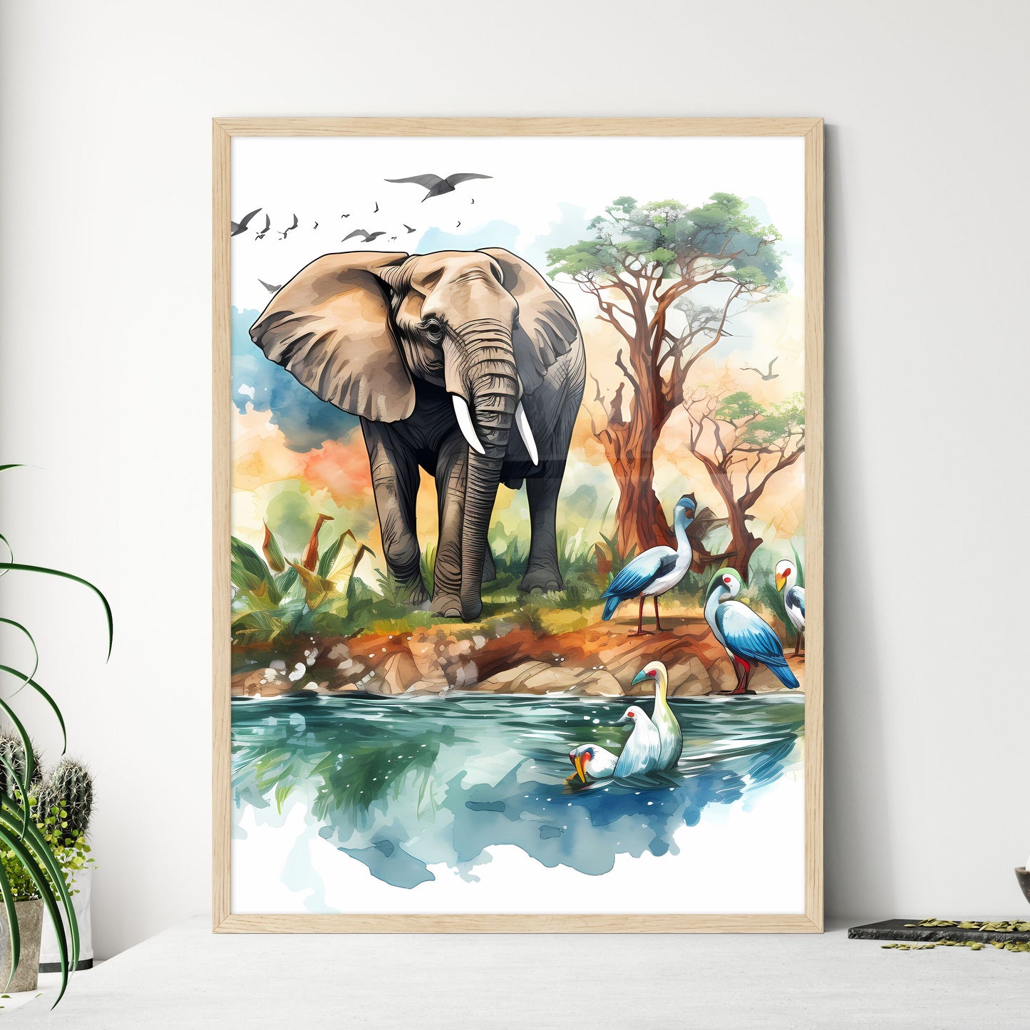 Elephant Birds Water, Colorful Acrylic Painting, Graphic Art Print, Gift for Travel Lovers, Home Decor Idea, Unique Wall Decoration, Wildlife Painting, Hand-Painted Poster, Vibrant Animal Art, Nature Inspired Prints, Exquisite Interior Art, Elegant Room Decor, Artistic Gift Idea, africa, animal, animal themes, animal trunk, animal wildlife, animals, animals in the wild, autumn, backgrounds, blue, cartoon, collection, computer graphic, cultures, cute, design, elephant, environment, family, feather, forest, grass, group, hand, illustration, image, landscape, large, mammal, multi colored, nature, outdoors, paint, painted image, plant, safari, safari animals, season, small, summer, tree, tropical climate, tropical rainforest, vector, water, watercolor painting Elephant Birds Water, Colorful Acrylic Painting, Graphic Art Print, Gift for Travel Lovers, Home Decor Idea, Unique Wall Decoration, Wildlife Painting, Hand-Painted Poster, Vibrant Animal Art, Nature Inspired Prints, Exquisite Interior Art, Elegant Room Decor, Artistic Gift Idea