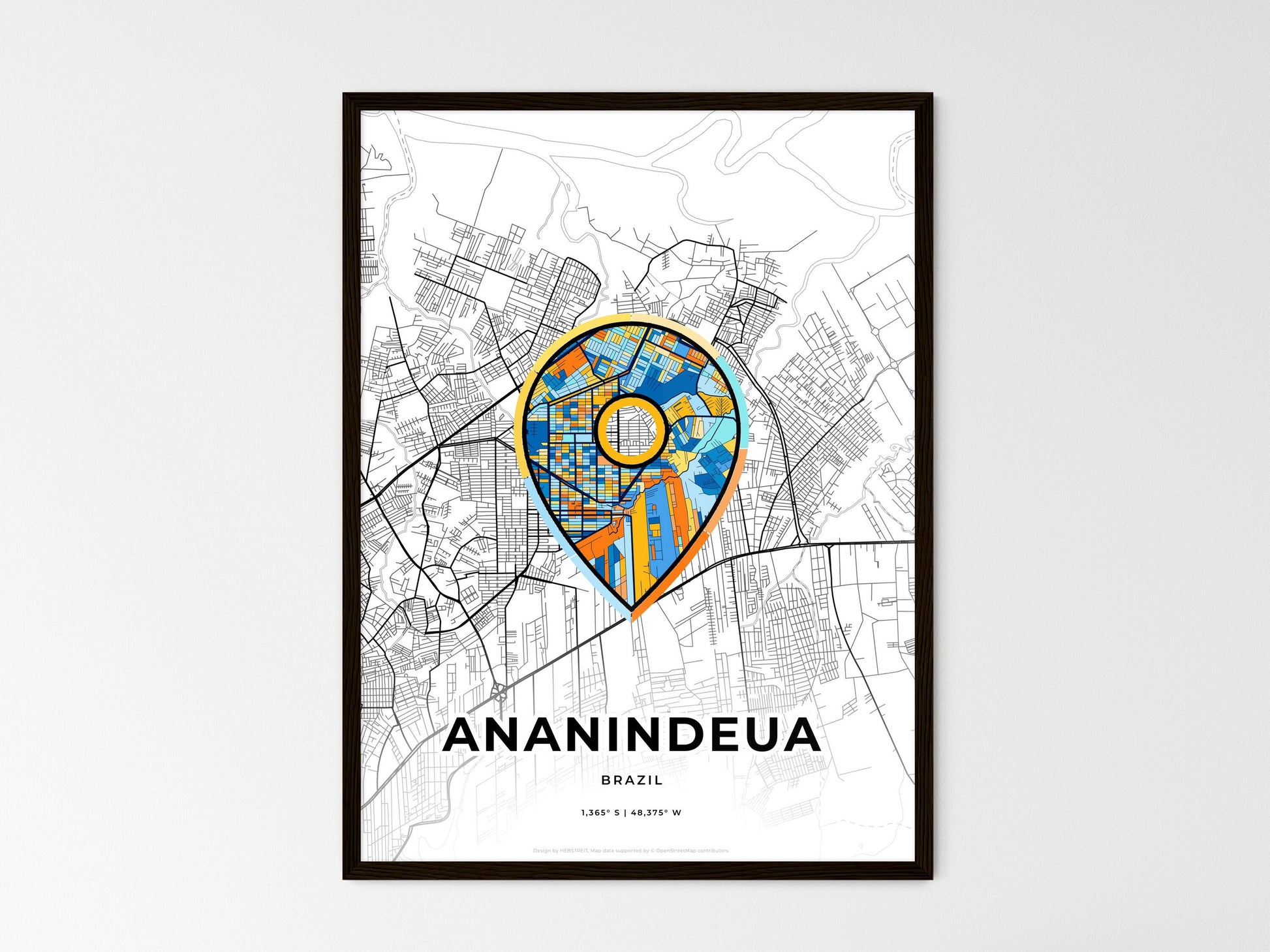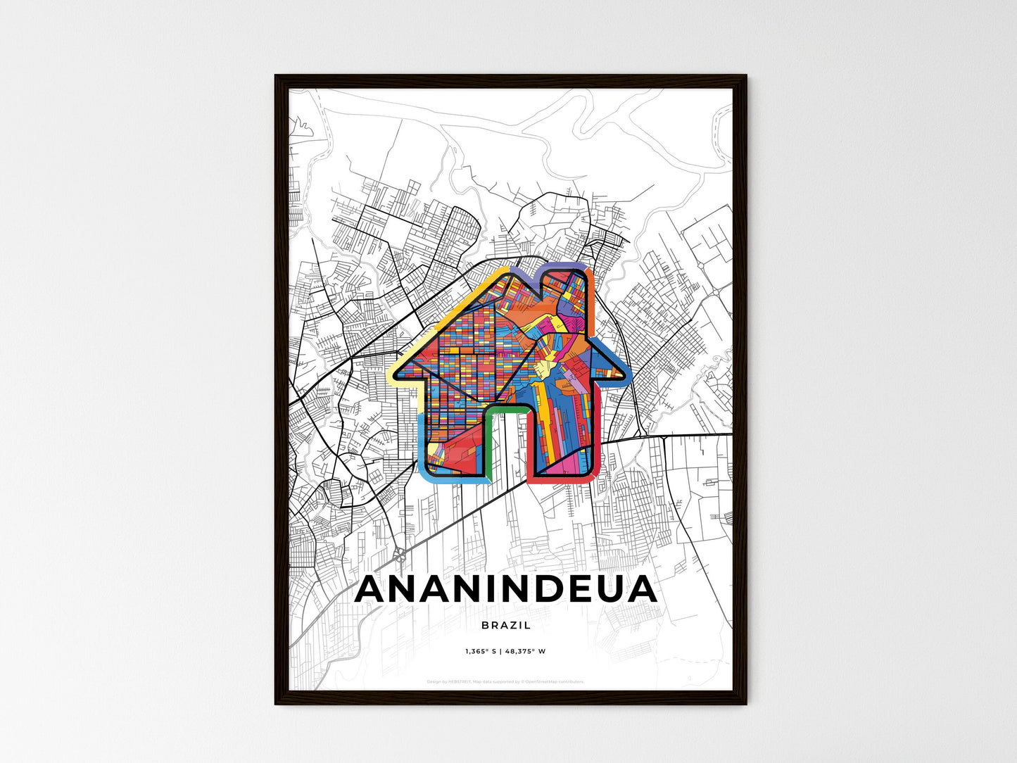 Immerse yourself in the vibrant heart of Ananindeua, Brazil, with this captivating minimal art map. This abstract masterpiece captures the essence of the city through a captivating mix of colorful icons and bold lines. From its bustling streets to its rich cultural heritage, Ananindeua exudes a unique charm that has captured the hearts of locals and visitors alike. Whether you're a seasoned traveler or a native who yearns for a tangible memento of home, this print will evoke a sense of connection and inspiration. As a gift or a cherished addition to your own home décor, this map is a testament to the beauty and diversity of Ananindeua, forever preserving the memories created within its captivating embrace.