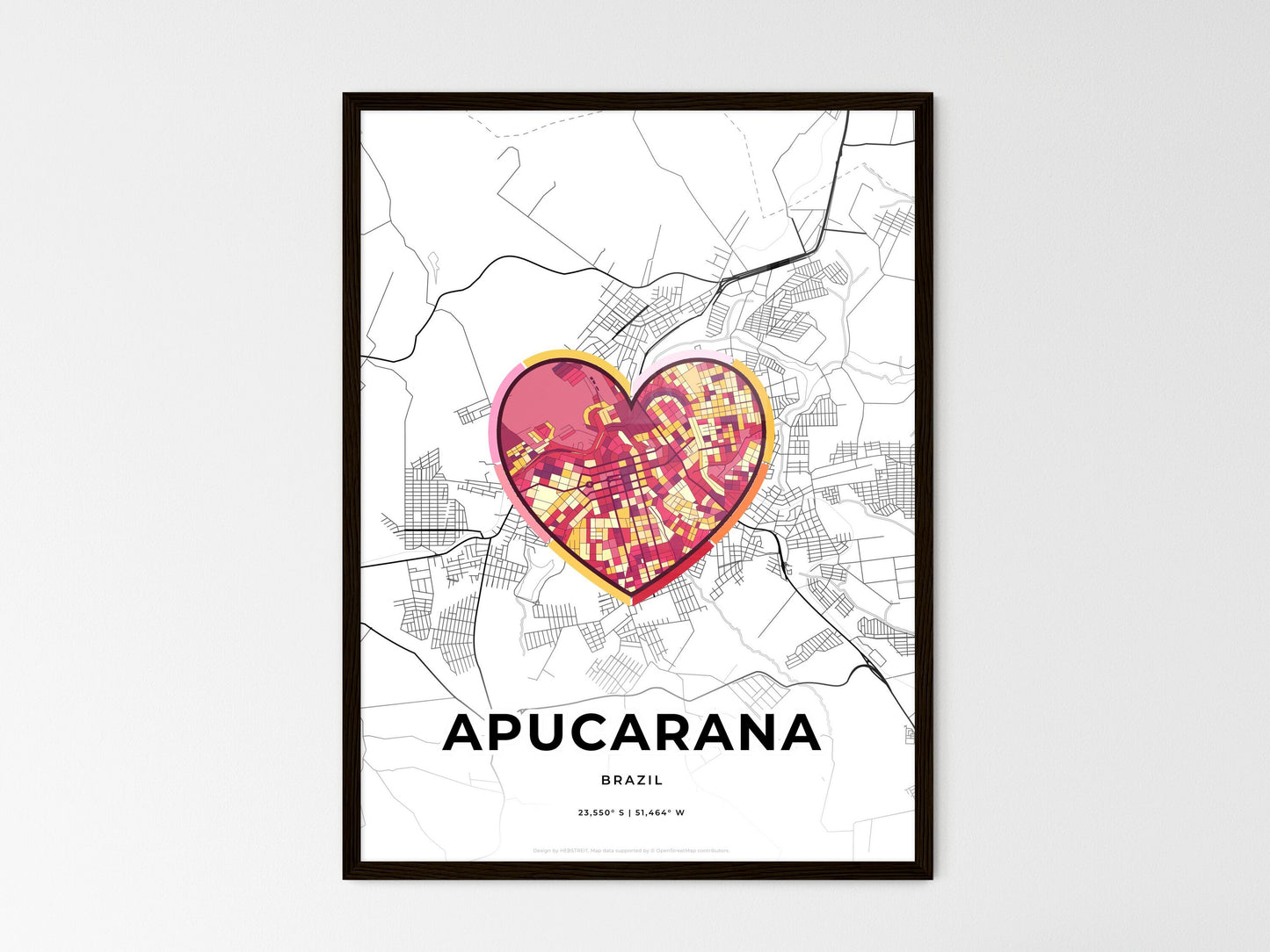 Our map of Apucarana Brazil shows minimalist designed roads, railroads and waterways combined with colorful urban areas within one icon.