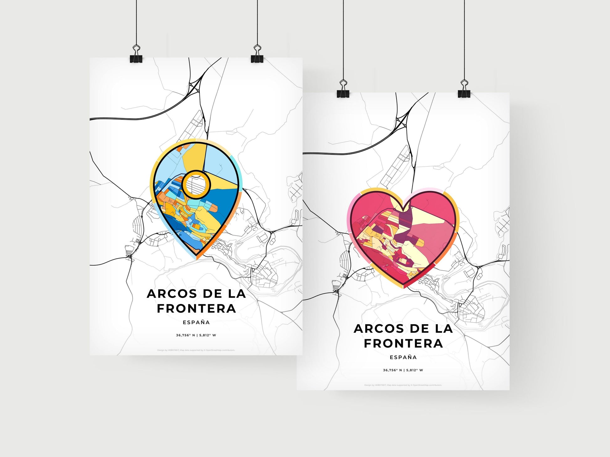 Arcos De La Frontera Spain, minimal art map with a colorful icon