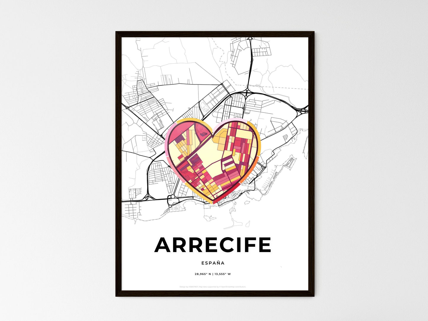Discover the vibrant charm of Arrecife, Spain, with this captivating minimal art map print. Arrecife, the capital of the Canary Island of Lanzarote, boasts a rich history and a fusion of cultures that has shaped its unique identity. Explore the city through the lens of art, where abstract lines and colorful icons playfully depict its essence. This print not only serves as a stylish addition to your home decor but also captures the allure of this enchanting destination. Let the map ignite your wanderlust and transport you to the sun-kissed streets of Arrecife.