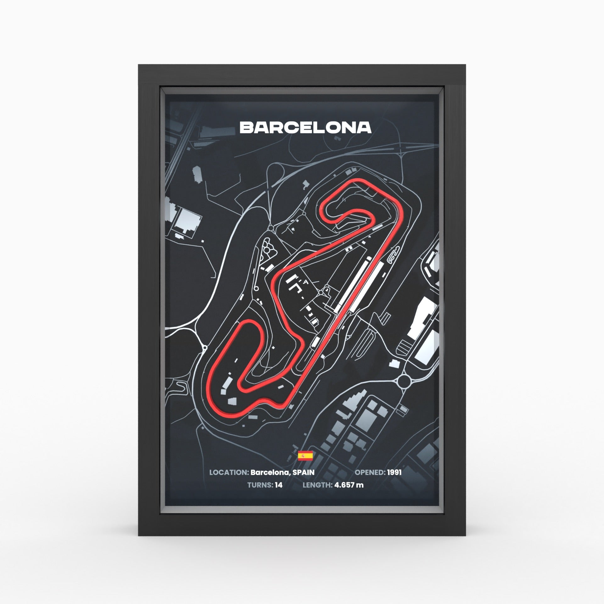 Dieses 3D-Poster verbindet moderne Technologie mit traditioneller Handwerkskunst und bietet eine beeindruckende Darstellung des Circuit de Barcelona-Catalunya, die jedes Zuhause oder Büro bereichert.