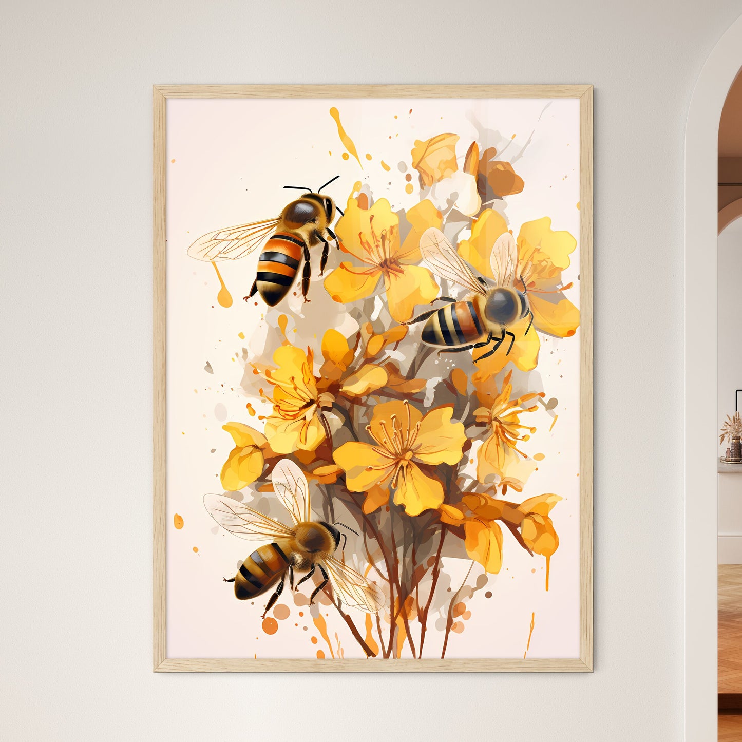 This exclusive print captures the intricate beauty of nature, showcasing a vibrant painting that celebrates the harmonious relationship between bees and flowers. Immerse yourself in the art, where delicate brushstrokes bring to life the intricate details of the bees and the radiant hues of the petals. Whether adorning your own walls or presented as a thoughtful gift, this print adds a touch of elegance and natural wonder to any interior. Enhance your home decor with this captivating artwork that invites contemplation and a deep appreciation for the beauty that surrounds us.