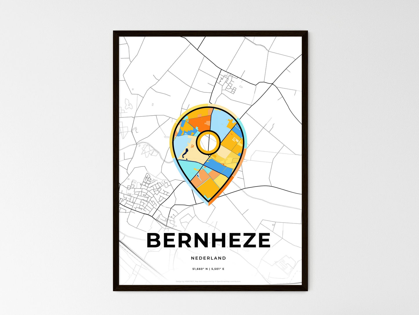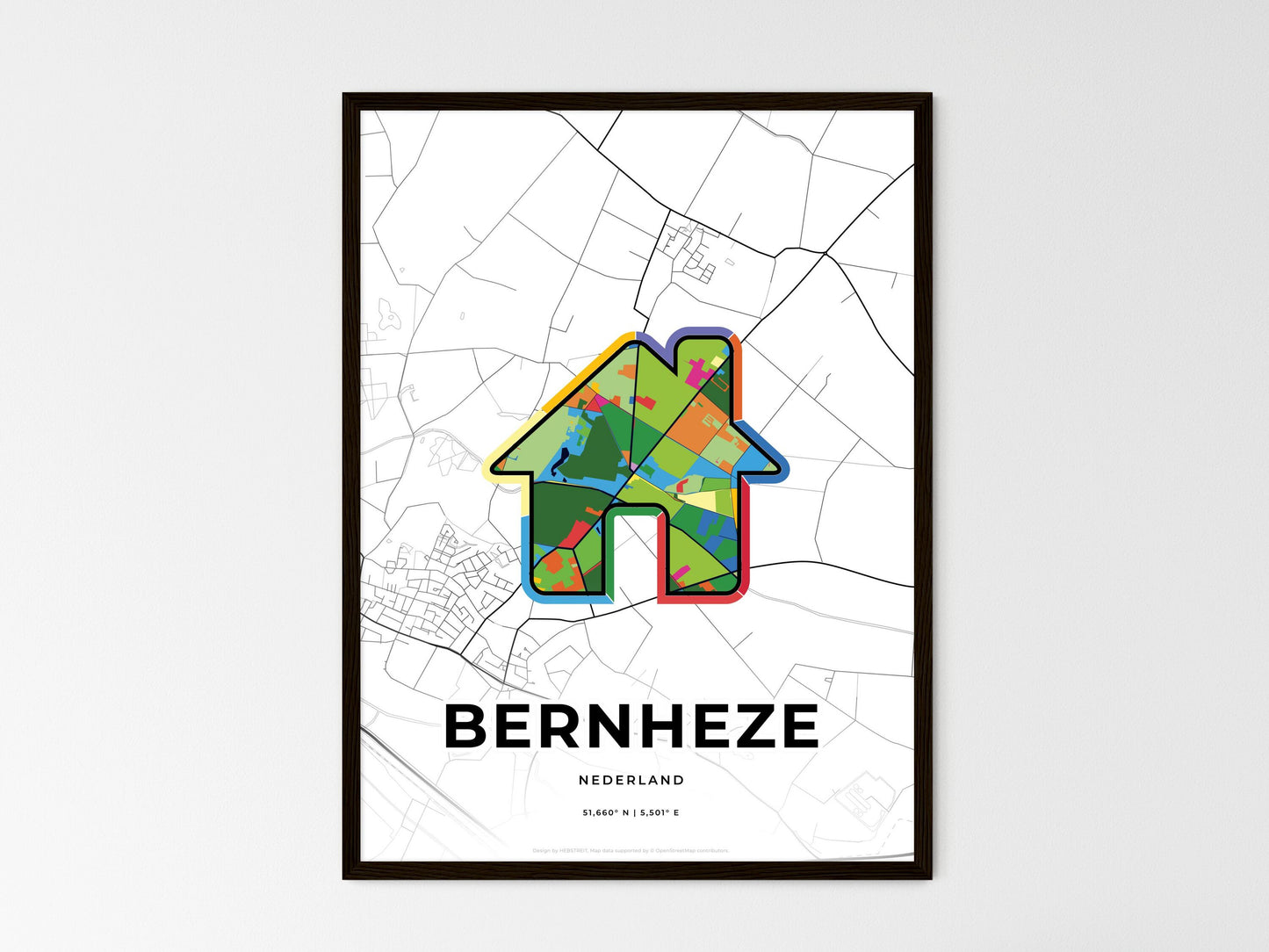 Our map of Bernheze Nederland shows minimalist designed roads, railroads and waterways combined with colorful urban areas within one icon.
